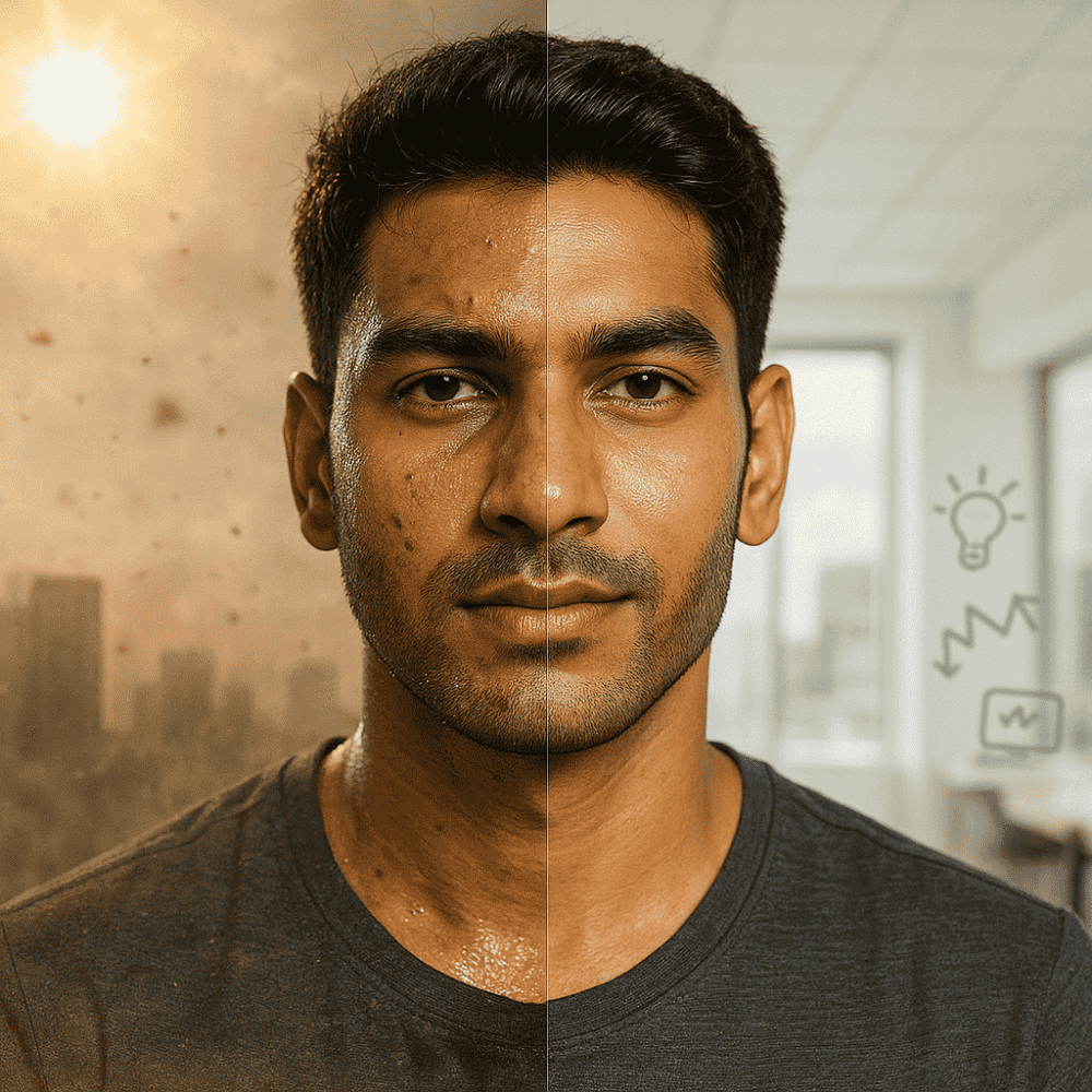 Everyday life in India exposes your skin to harsh UV rays, clogged pores, dullness, and acne breakouts. Generic skincare doesn’t understand these battles — but Mard Sutra does. Our dermatologist-formulated range is crafted to tackle these daily skin struggles head-on. From sweat-proof sunscreens to oil-controlling face washes, Mard Sutra simplifies skincare for the modern Mard.